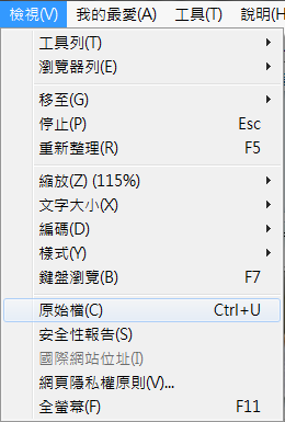 1.你可以透過在IE瀏覽器上點選「檢視à原始檔」,來檢視你的網站是否已做好設定。