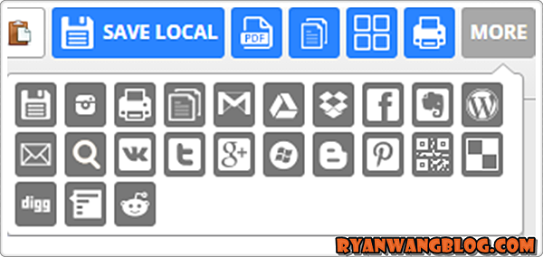 最後,如果點選最後方的"more",可以發現你還能夠選擇各種不同方式去分享、或是去使用這張截圖,功能性可以說不但是相當完整,而且還非常方便。相當實用又容易上手的一款外掛程式,推薦給各位瞜~~