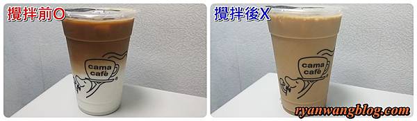 原來,一杯特調咖啡主要是由純白的新鮮牛奶鋪底,上面再蓋上濃醇的黑咖啡,從側面看,剛做好的咖啡黑白兩色交錯,在視覺上相當富有層次感、效果十足,光看就覺得很好喝,不過正當這杯讓我相當滿意的絕美「作品」即將送到我手上的那一刻,店員卻習慣性的把剛封膜完的冰咖啡倒置之後均勻搖晃,或許這個動作是貼心的方便顧客飲用,不過對於整體的視覺觀感上,卻有點像是一杯高檔雞尾酒,瞬間變成一杯普通的咖啡牛奶一樣,連價值感都跟著大打折扣...............