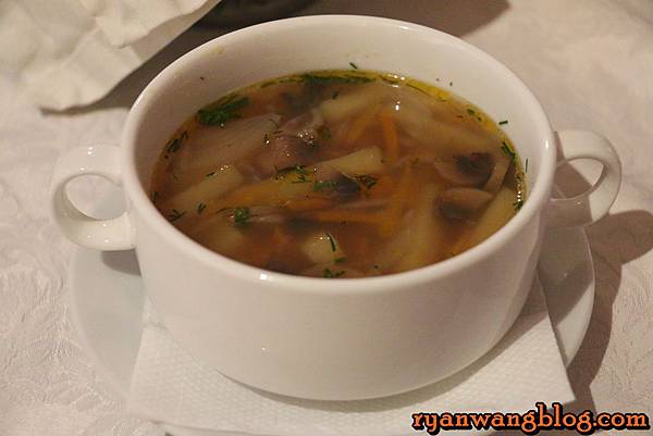 加了許多新鮮蔬菜以及在莫斯科時常看到的蘑菇,算是一到非常爽口的美味湯品~~