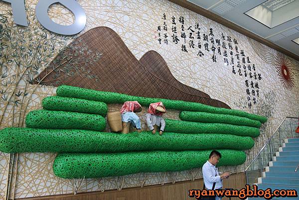 來到候機大廳,牆上裝飾的是台灣美麗的竹編藝術,述說的是農業社會的農忙生活~~