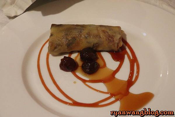 甜點的部分則是用類似春捲皮的東西包裹著新鮮果醬,甜而不膩的醬汁加上有著QQ口感的餅皮,算是一道還蠻特殊的特色點心~~