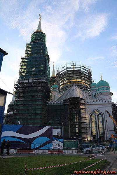 還有一座正在建造中的教堂,天空藍的屋頂十分漂亮,也非常具有藝術性,此外,從屋頂上的月亮造型,可以判斷這應該是一座伊斯蘭教堂~~
