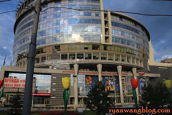 早餐吃完之後,趁著集合前,就到飯店附近走走逛逛,順便消化消化,旁邊這棟造型特殊的建築物,前面還有巨型又鮮豔的鬱金香裝飾,十分吸睛~~