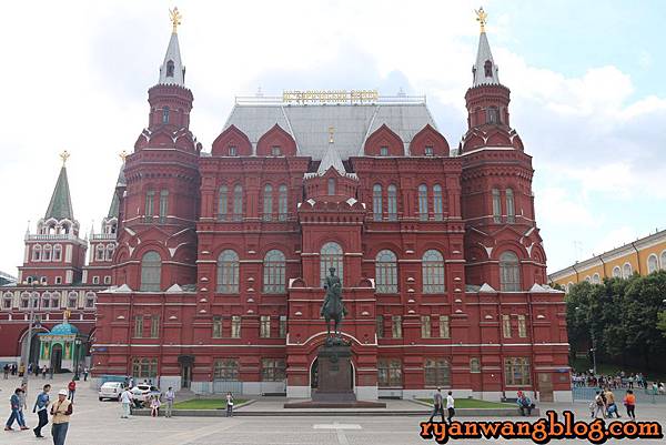 「紅場」的「紅」字,其實代表的是「漂亮」的意思,所以紅場指的就是「漂亮的廣場」。紅場位於市中心內,是莫斯科境內最有名的一座公眾廣場,附近也有許多著名的觀光景點,而來到紅場,首先映入眼簾的就是這座美麗的歷史博物館,裡頭除了有展出一些珍貴的古文物之外,前方還有一座莊嚴肅穆又生動的雕像,而建築物上方白色的屋簷,遠看還真的很像是被白雪所覆蓋似的,十分特別~~