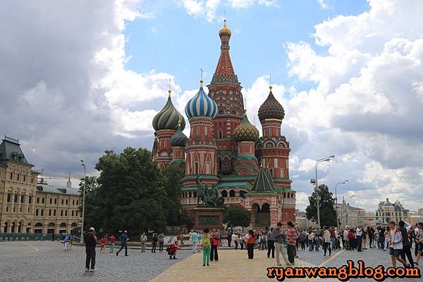 最後則是紅場裡頭最大的重點所在-聖瓦西里大教堂,這座教堂也是一座東正教堂,不過華麗的建築設計搭配上誇張鮮豔的配色,讓聖瓦西里大教堂成了紅場裡頭最著名的觀光景點~~