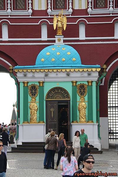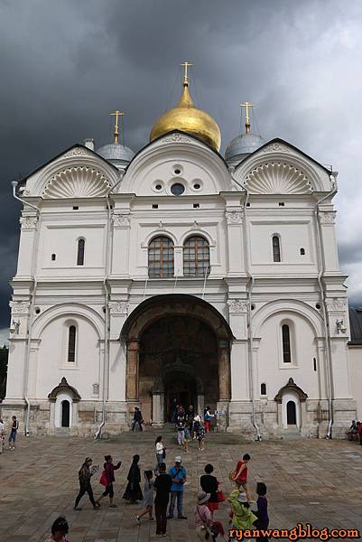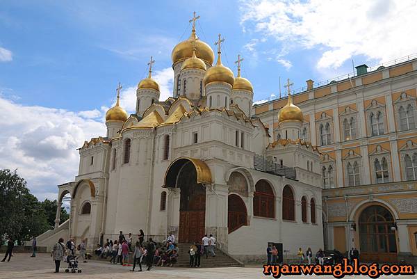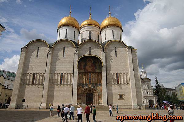 聖母升天大教堂除了是俄羅斯最重要的教堂之外,也是莫斯科都主教及牧首的陵寢所在,在過去幾個世紀以來俄羅斯許多重要儀式都選擇在這裡舉辦,像是舉行統治者的加冕禮、選擇東正教會領導人,甚至是戰爭前的祈禱也包含在內,由於禁止拍照,再加上可能有些對死者不禁,所以進到裡頭就乖乖把相機收起來聽故事就好了~~