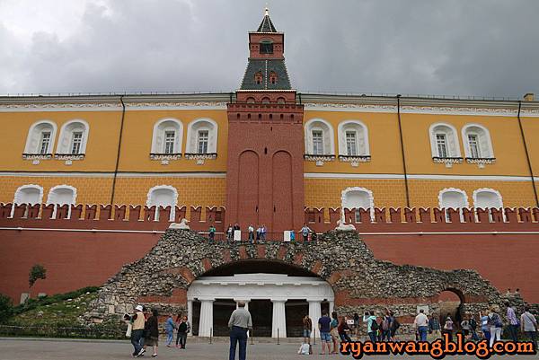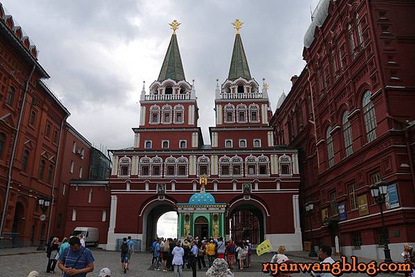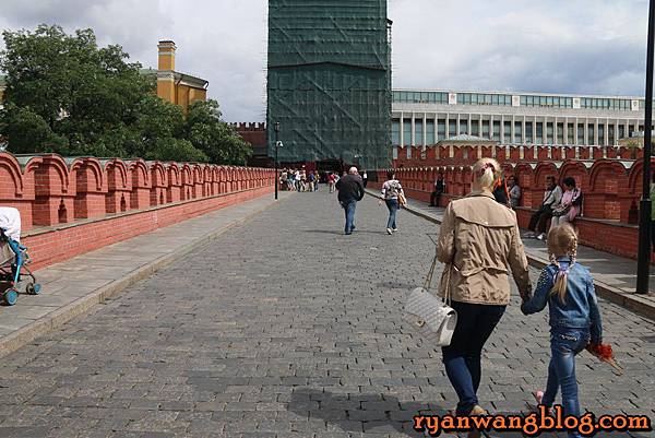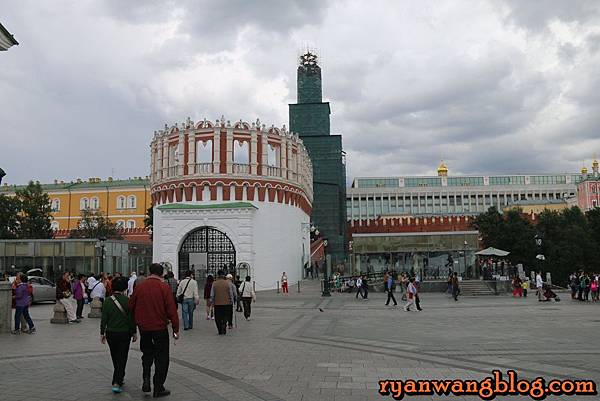 附近還有一座三聖塔,也就是通往克林姆林宮的入口,進入之前還必須接受安全檢查才行,不過目前三聖塔還在整修中,所以無緣見到全貌,在通往三聖塔的前方有一座三聖橋,而三聖橋的前方那座白色如碉堡般的塔,則是三聖橋的入口~~