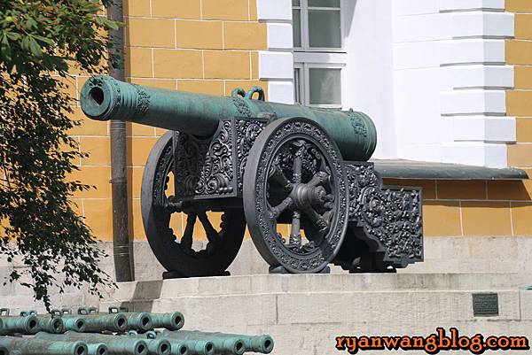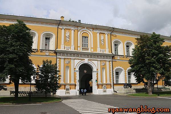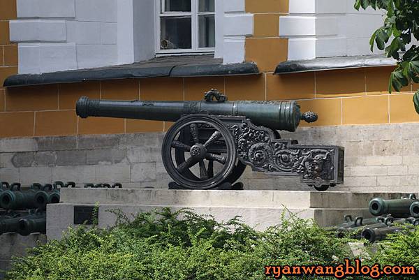 所謂的克林姆林宮指的不是一座皇宮,反而比較像是一座巨大城牆裏頭有著許多不同建築物,而一踏進克林姆林宮,最先看到的就是這座一整片淡黃色的軍械館,外頭還展示著一些火砲塔~~